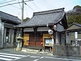 {右・寄}金龍山 東明院 [臨済宗妙心寺派]入江2-1-18 理容三ツ井の先を右折すると正面。屋根に鯱がついている山門は慶長6年(1601)江尻城が廃城になる際に裏門を譲り受け移築したが焼失したため天保2年(1831)焼け残った南蛮鉄の武田菱をかたどった門扉の金具を使用して復元したもの。山門を入った左には修復時に使用するはずだった小芝神社(小芝町4-10)の旧裏山門の鬼瓦が置いてある。本堂の左前に文化元年(1804)の石仏や明治27年(1894)の供養塔、右前には蘇鉄がある。他にも境内には6地蔵がある。 |