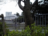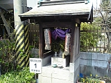 {右}松原観音堂・津嶋神社 西久保原交差点の先に神社の小祠と奥に観音堂がある。袖師ふるさとの路6の看板もある。観音堂は創建は不詳だが江戸時代は庚申堂で天明年間(1781-89)に如意輪観音を合祀した。明治初期ごろ改築され昭和20年戦災焼失、翌年復興した。現在は簡易老人憩の家にもなっている。神社は天王様と呼ばれており明治時代には毎年麦藁で1m四方の神殿を造って祭りをし珍しい行事として知られていた。境内左には一等水準点もある。 |