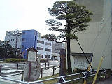 {右}旧東海道松並木の松 右の昭和シェル袖師東SS(横砂中町21-30)を過ぎると葉が枯れている松が1本あり幹に袖師ふるさとの路24の看板がある。この後は庵原(いはら)川にかかる庵原川橋を渡る。橋を渡り榊屋を過ぎた左にも枯れてはないか同様の松が1本あり同じく看板袖師ふるさとの路12がある。 |