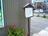 {左}辻一里塚跡(42) 若杉金物店(辻2-4-27)の斜め向かいの民家前に木製立札がある。一里塚は実際はここではなくすぐ先の十字路付近の両側にあった。 |
