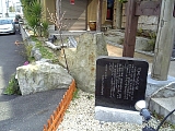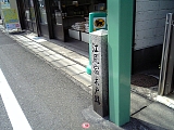{右}西木戸跡 少し先の佐野米穀店(入江2-5-7)手前の緑の鉄柱の陰に平成3年建立の碑がある。江尻宿の京側の入口。この付近は漫画家さくらももこの実家の八百屋があった場所で自身の少女時代をモデルとした代表作ちびまる子ちゃんの舞台にもなっている。 |