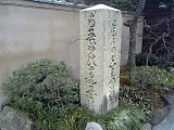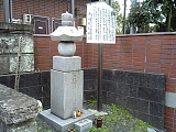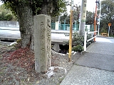 {左}志三づ道道標(谷口法春題目塔) 県道197号を横断ししばらく行くと追分羊かん本店の手前にある。御影石の題目塔(高さ1.4m幅40cm)で「是より志三づ道」とある。左に分岐する細道が志みづ道で清水入江小学校の校庭沿いから清水文化センター横を通り久能道と交差し清水方面へ通じた。道標は道の反対側にあったが昭和32年頃に現在の位置に正面に道標面、右に「七面大明神守護」裏に「実相院法入日中」「法春日陽寿位」の向きで置かれ松2本も植えられた。建立者の谷口法春は京出身で元禄年間(1688-1703)頃に妻や息子・法悦と共に全国を行脚し寺や刑場などに題目塔を建てた。東海道には他に品川宿近くの大経寺、由比宿近くの讃徳寺、二川宿の妙泉寺、庄野宿の先の川合、関宿の西の追分、瀬田の妙真寺などに現存する。 |
