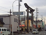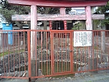 {右・寄}魚町稲荷神社(江尻城跡) 江尻町14-74 東海道は履き物西村屋前の交差点を左折するがまっすぐ行くとある。裏の清水江尻小学校を合わせた場所が永禄12年(1569)武田信玄が築いた江尻城(小芝城)跡。城主は武田信光、元亀元年(1570)山県昌景を経て天正6年(1578)穴山梅雪。梅雪は信心深く城にも鎮護が必要と考え神社を建立し天守閣(観国楼)も築いたが天正10年(1582)家康に降伏し慶長6年(1601)廃城。境内には右に明治天皇御東行御遺跡や左に大正6年(1917)稚児橋の親柱がある。社殿左には昭和31年小学校に赴任した新人教師堀田哲爾がサッカーをやらせたことに起源する日本少年サッカー発祥の碑(平成11年建立)もある。狛犬は明治39年(1906)燈籠は昭和15年。境内右に魚町自治会館、左はすべり台など遊具のある公園。 |
