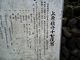 {左}上原子安地蔵堂 少し先にある。創建は不明だが焼失した旧本尊は行基作(奈良時代)と伝わる。天正10年(1582)家康が武田勝頼を攻める前に江尻城主穴山梅雪とこの地蔵堂で会見し梅雪は寝返った。後に荒廃したが元和元年(1615)大坂夏の陣直後に福聚院(吉川267)明眼和尚の尽力と付近住民の協力により再建。明治24年(1891)木像の本尊と堂が焼失して以来地蔵堂は間口1.2m奥行1.8m程の仮堂だったが昭和7年(1932)再建された。境内にはすべり台などの遊具もあり左には高さ10.7m目通2.2m樹齢200年以上の槙、社殿前には蘇鉄もある。付近は鎌倉時代以前から地蔵原と呼ばれ室町後期から上原となり永禄11年(1568)武田信玄が今川氏真を攻める時には信玄配下の山県昌景が上原に宿営した記録がある。 |