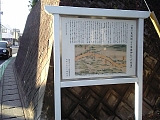 {右}高札場跡 一里塚跡すぐ先の十字路を渡ると木製立札がある。高札場はこの付近にあった街道右側の一里塚の横にあった。 |