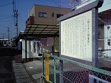 {右}閻王寺跡 しばらくするとカンコー学生服の看板がある服部商店の先の駐車場に平成12年設置の説明板がある。ここには閻魔大王を本尊とする慈雲山閻王寺があり子宝に恵まれ代々繁栄すると伝えられたため多くの人々から信仰されたが明治10年(1877)焼失し廃寺となった。閻魔大王像はその後鳳林寺に移され昭和52年中之郷2丁目の熊野神社境内にある鳳林寺薬師堂に移された。閻王寺の門前の東海道を閻魔坂といい傾斜が急だったため馬から落ちる人が多く難所と言われた。閻魔大王の仕業と考えられ住職が閻魔大王像の胎内仏を後ろ向きにして法要を行ったところ事故は無くなったと伝わる。閻魔大王像は竜爪山近くの平山村から切り出した1本の大木から造られた3体の仏像のうちの1体とされる。 |
