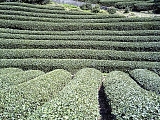 {左・寄}岡部町 茶畑 坂下延命地蔵尊から先の東海道は木和田川の右岸に沿ったまま国道反対側の県道208号に合流するはずが道は国道敷設により消滅している。国道の反対側に渡るためには地蔵尊からトンネル側に少し戻った坂下歩道橋で渡るかそのまま国道の左側歩道を進み最初の信号の廻沢口交差点で廻沢口歩道橋を渡り迂回する。国道の左側歩道を行くと左には茶畑が続く。室町時代には既に茶の栽培をしていたという岡部町は今も玉露、てん茶、かぶせ茶、煎茶などの高級茶を栽培しており特に北部の朝比奈地区は宇治(京都)八女(福岡)と並び玉露の三大産地。廻沢口歩道橋を渡りすぐ右の上り坂で国道から分岐するとすぐに県道208号に合流し平坦な県道を進んでいくと左に岡部川が沿うようになる。 |