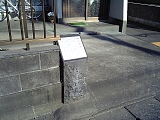 {左}枡形跡 やがて通りに突き当たり向かいの文具店の寒玉堂(内谷629-5)前に枡形跡の説明石柱がある。岡部宿はここまでとなる。こちらは東枡形跡と違い枡形の名残が残っており旧東海道は右折しすぐの岡部役場前交差点を左折し県道208号を進む。 |