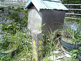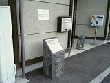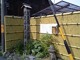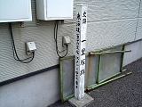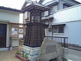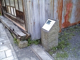 {右}高札場跡 少し先に駐車場があり弘法大師堂の木札がかかる建物の間に説明プレート石柱がある。弘法大師堂の軒下には「非常板」と書かれた鉄板が小さな屋根の下に吊り下げられておりこの辺りの民家によく見られる。 |