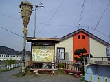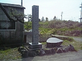 {左}鬼島一里塚跡 (49) 橋を渡り少し行くと葉梨川が左に沿うようになり一旦国道1号に合流しすぐの中古車販売のシルエット自動車販売を過ぎたら左へ分岐し県道208号に入る。右には松が点在ししばらく行くとアパート「エムロードA」の前に平成元年建立の「史跡一里塚跡」の木杭がある。杭の側面には「東海道 百二十六里塚 江戸から四十七番目」と記されているが山中新田一里塚の前の25里目と本市場一里塚の後の35里目が欠番となっているため通番としては江戸から49里目。 |