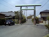{右}青山八幡神社鳥居 少し先に青銅製の大鳥居と昭和4年(1929)常夜燈がある。神社は鳥居をくぐり葉梨川を昭和38年竣工の渡御橋で渡り国道1号を渡った正面。祭神は誉田別命、玉依姫命、息長足姫命。前九年の役で奥州に向かう源頼義・義家が立寄り付近の地形が京都の石清水八幡宮に似ていたため分霊を勧請し創建。源氏が5里ごとに創建した5里八幡の1つでもある。豊臣、徳川から庇護を受け歴代田中城主の酒井、西田、本多氏も神器等を寄進した。境内地5113坪(16867平方m)。国道を渡った所の昭和52年の鳥居も青銅製で右には天保14年(1843)灯籠がある。境内には里宮、力石、井戸跡、平成9年の万葉歌碑などがあり社殿は山上にある。本殿は昭和61年に再建。登口右に安政2年(1855)灯籠や御神木がある。 |