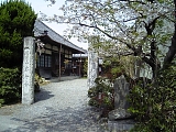 {右}功徳山 専称寺 [浄土宗] 志太郡岡部町岡部663 川を渡るとある。文禄4年(1595)称蓮社専誉順賀が開山。山門入ると正面に「岡部の一ト火灸」として有名な灸の治療所がある。何箇所も小さな灸をせず背中の一箇所だけ大きな灸をする灸で江戸初期にキリシタンを改宗させるため諸国を行脚した幡随意上人がここにも立寄り住職に伝授した。鎌倉前期の作とされる木造不動尊立像(高54cm)と江戸の柑本南浦が享保11年(1726)最林寺(現:十石坂観音堂)に奉納した木造西行座像(高50cm)を所蔵し共に町文化財。他にも祐天上人御名号、幡随意上人御名号各一幅も所蔵。山門の左にある別の入口が旧山門跡で平成12建立の寺名石柱がある。旧山門跡から入って右の祠には多くの石仏、本堂前を過ぎて奥の正面には弘化5年(1848)の三界万霊塔もある。 |