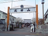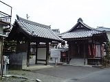 {右}成田山 新護寺 [真言宗智山派] 本町4-5-24 少し先にアーチ状の門がある。古くは照光院と称していたが建長4年(1252)後嵯峨上皇の皇子宗尊親王が鎌倉6代将軍となり京都から鎌倉に行く途中、御所車の左輪が壊れて修理する間に休息した以降は左車山休息寺と改めた。当時寺内には本堂、不動堂、大師堂、庫裡等の伽藍があったが戦国時代の戦火で焼失し廃寺同様となった。明治になって県下唯一の成田山の末寺となり改称した。入ってすぐの左右に金剛力士の石像がありその先に開基百年記念の昭和48年(1973)狛犬と左に開基法憧法師像がある。境内にはおたすけ観音、ボケ除けの像、水掛け不動尊、日限地蔵、釈迦如来像、十二支守護本尊、水子地蔵、布袋尊、弘法大師、不動明王などがある。社殿左には境内社の水天宮もある。 |