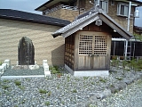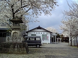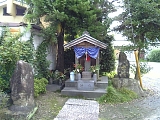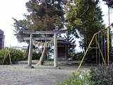 {右}左車神社 本町4-6-15 新護寺の社殿前左から裏に抜けるとある。新護寺の前身照光院で修理された宗尊親王の御所車の破損した左輪や車軸を寺の裏の大きな銀杏の根元へに埋めその跡に神社を建立したのが起こり。左車神社と名付け付近の地名も左車となった。祭神は道路の神である岐神の他に八衢彦神、八衢姫神。祠のような社殿には石祠が2つと木の祠が1つ安置されている。鳥居は明治16年(1883)。境内には銀杏の木の他、ブランコや鉄棒も置かれている。 |