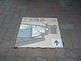 {右}下本陣跡 少し先右には下伝馬町の大黒天前にあったのと同じ東海道藤枝宿絵図がありさらに進むと長島酒店(藤枝3-2-27)先の閉店したギフトショップ豊島屋前の歩道にイラストプレートがある。下本陣は村松家がつとめていた。朝鮮通信使に先立ち運ばれた将軍への献上品である鷹も宿泊し鷹用の御鷹部屋も備えていた。明治元年(1868)と翌年には明治天皇も宿泊し昭和56年建立の明治天皇藤枝行在所址碑が神明神社の裏にある。 |