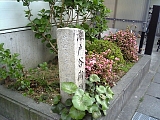 {右}岡野繁蔵出生地 平成4年竣工の稲川橋を渡って少し先に平成6年建立の青字石柱と平成10年設置の説明板がある。明治27年(1894)に生まれ21歳でインドネシアのスマトラ島に渡り大信洋行という会社を起業し雑貨貿易商として成功した。後にジャワ島のスラバヤに千代田百貨店を開店し南洋のデパート王と呼ばれたが太平洋戦争で帰国。戦後は衆議院議員にもなったが昭和50年81歳で没した。インドネシアの古美術の収集家としても知られ昭和17年に日本橋三越でコレクションの展示即売会も開かれた。東海道は先に進むと平成6年竣工の青木橋を渡り今度は左に松が少しある。 |