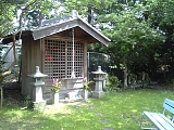 {左・寄}東泉寺跡 広い歩道が若干狭くなるところで左に2本の道が分岐しており右の道へ左折し少し行くと左にある。現在は南新屋会館の敷地になっており地蔵尊の祠、文字庚申塔、天保3年(1832)馬頭観音、西国33ヶ所巡礼塔がある。敷地の奥左には延宝9年(1681)元禄6年(1693)などの石塔・石碑が20基弱ある。 東海道に戻りしばらく行くと左に小さな津島神社がある。祭神は建速須佐之男大神と大穴牟遅命。 |