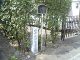 {右}明治天皇御小休所址碑・常夜燈 平成15年竣工の瀬戸橋で東光寺谷川を渡るとある。昭和9年(1939)建立の明治天皇御小休所址碑は「御小休所址」とだけ刻まれており県知事田中廣太郎の揮毫。付近にあった茶屋兼旅籠屋の増田屋の庭園跡から近年移されたもの。明治11年(1878)11月2日に明治天皇が東京に向かう際に通称おみゑ茶屋と呼ばれた増田屋で休憩した。右には瓦葺きの祠があり中には天保4年(1833)の常夜燈が安置されている。 |