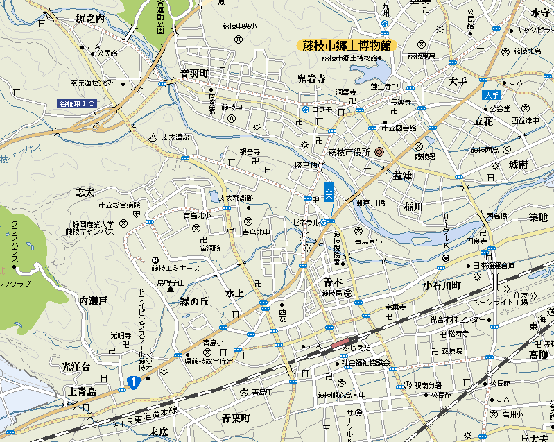 青木交差点 青木交差点の5叉路で東海道は国道1号線を斜めに横切り右2本目の道を行く。交差点の左2本目の通りに入りまっすぐ行くと藤枝駅。藤枝駅に向かう途中の藤枝駅北交差点を右折してすぐ左の喜久屋(駅前1-6-19)には強飯(おこわ)を梔子(くちなし)で染めた鮮黄色の瀬戸の染飯(300円,650円)がある。古くから志太地域に伝わるもので太田牛一の「信長公記」に天正10年(1582)武田勝頼を破って凱旋するくだりに瀬戸の染飯の記述がある。天正18年(1590)秀吉の小田原攻めに随行した久我敦通も「東国紀行」で「瀬戸の染飯で空腹が満つ」と記している。梔子には疲労回復の効能があり旅人に重宝し街道名物にもなったが明治には途絶え昭和後期に喜久屋が復刻した。下青島には染飯茶屋蹟がある。 |