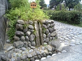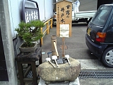 {左}甘露の井戸水 少し先向かいの佐の幸茶店工場駐車場前にある。南アルプスの雪解け伏流水を水源とする井戸水が手水石に流れ飲めるようになっており水質検査の結果も貼られている。この地には天明年間(1781-89)より昭和初期まで甘露亭という料亭があり直径1m深さ7mの井戸があった。現在は佐の幸茶店の工場に於いて冷蔵庫の冷却水に利用しているが平成3年から東海道沿いに手水石を設置し通行人に提供するようになった。甘露亭は現在は無いが明治45年(1912)のれん分けした萬露亭(本通6-6126-1)が近くにある。 |