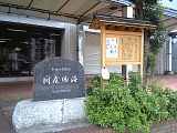 {右}中本陣跡 本通3-8223-1 下本陣跡から少し先の天野屋呉服店前に平成19年建立の石柱がある。天野屋と隣の文具のオカダが大久保新右衛門の中本陣だった場所で享和3年(1803)島田宿明細書上帳の記録では建坪244坪(805平方m)。宿内は西から1丁目〜7丁目に分けられており上本陣、中本陣が2丁目で下本陣が3丁目にあった。島田宿には脇本陣はなかった。 |
