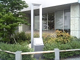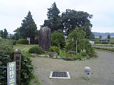 {右}島田市博物館 河原1-15-50 公園向かいにあり入口角に夢舞台道標島田市 島田宿がある。1階の常設展示室では旅と旅人をテーマに島田宿と川越、旅道具の展示とジオラマビジョンで江戸時代の旅を紹介しており屋外展示室には川舟等の展示もある。2階は特別展示室で島田の歴史と文化に関する企画展などに使用される。9時-17時、月休、300円(分館と共通)。庭の右には平成4年建立の芭蕉句碑「ちさはまだ 青ばながらに なすび汁」平成5年建立の芭蕉直筆の絵も摸刻してある句碑「たはみては 雪まつ竹の けしきかな」がある。いずれも元禄7年(1694)塚本如舟邸に泊まった時の作。春野菜であるちさと夏野菜であるなすをご馳走してくれた如舟に感謝した句。江戸時代の川越は博物館前辺りから斜め北西の対岸に渡った。 |
