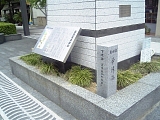 {左}俳聖芭蕉翁遺跡・塚本如舟邸阯 本通3-7974 向かいの静岡銀行島田支店前に昭和28年建立の碑があり台座の石に昭和55年の説明板がはめ込んである。塚本如舟は本名を孫兵衛と言い元禄9年(1696)に川越制度ができると橋爪助左衛門とともに初代の川庄屋に任命された。俳人でもあり元禄4年(1691)10月江戸に向かう芭蕉が初めて如舟邸を訪れ元禄7年5月伊賀に帰郷の折にも滞在しいずれも多くの句を残した。元禄7年の時には如舟の発句「やわらかに たけよ今年の 手作麦」に芭蕉が「田植とともに たびの朝起」と附句する連句も残し「元禄年 五月雨に降り込められて あるじのもてなしに心うごきて聊筆とる事になん」と後書まで添えた真跡が塚本家に伝わり現在は島田市博物館が保管している。碑面にはその連句の真跡が模刻されている。 |