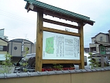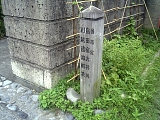 {右}島田一里塚跡(52) 島田信用金庫七丁目支店(本通7-7730)から少し先の虎岩文具店(本通7-8406)前に車道側に向いて昭和41年建立の石柱と木製説明板がある。石柱には「東海道島田宿一里塚阯」と刻まれている。江戸から50里と記されている天和年間(1681-84)東海道絵図には右側の塚しか描かれておらず幕末の島田宿並井両裏通家別取調帳にも右塚のみが記載され幅5間2尺(9.7m)で榎が植えられていたとある。 |