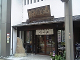 {左・寄}元祖 清水屋 島田市本通2-5-5 本通り2丁目交差点を左折しJR島田駅方面に向かうと右にある。江戸時代からこの地で営む老舗菓子屋で小饅頭が有名。享保6年(1721)5代目伝左衛門は宿に長期逗留していた紀州浪人の置塩露庵に甘酒皮の饅頭作りの秘法を伝授され従来の薬饅頭に代えて酒饅頭を創作した。後に松江藩主で江戸時代の代表的茶人でもある松平治郷(不眛)が通行した折に食べ一口で食べられる大きさするよう助言し小饅頭となった。代々伝わる秘伝の米麹を元にじっくりと練りあげた生地を丹念にもみだすようにタネ切りし特製こし餡を包み蒸し器で蒸される。 店の前には其角の句碑「饅頭で 人を尋ねよ 山ざくら」もある。小饅頭10個入り420円。8:30-20:00(水曜は-19:00)無休(水曜は小饅頭の販売なし)。