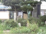 {左・寄}宗長庵趾碑 JR島田駅前の交番前に石碑群がある。元禄年間(1688-1704)塚本如舟が所有地であった当地に建立し雅人たちと諷詠を楽しんでいた庵の跡。長久庵とも呼ばれたが島田出身の室町時代後期の連歌師宗長を慕い宗長庵と名付けられた。元禄7年(1694)には松尾芭蕉も訪れている。庵は後に曹洞宗の寺となったが荒廃して廃寺となった。現在は石碑が3基残り右から昭和34年建立の宗長の句「遠江国、国の山ちかき所の千句に こゑやけふ はつ蔵山の ほととぎす」、芭蕉を慕う漢文(上部欠損)、芭蕉が元禄7年に詠んだ句(上部欠損)「さみたれの 空吹きおとせ 大井川」。昭和32年市史跡に指定。 |