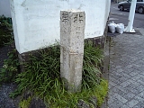 {左}本町通り道標 本通り2丁目交差点を渡り少し行くとすし屋魚角(本通1-8-1)がある十字路の角にある。中央で折れているものが補修されている。4面に方向、行先、距離が刻まれており「東 六合村境迄十八町十六間 青島町に至ル」「西 大井川渡船場迄 十五町四十間 金谷町ニ至ル」「北 向谷鶯橋迄 二十四町六間 川根ニ通ス」「南 島田駅迄一町 第壱街青年会」とある。島田駅は明治22年(1889)開業、大井川は明治29年(1896)橋流失後から昭和3年(1928)まで船渡しだったためその頃に建てられたものとされる。川根町は大井川の中流部にあり川根茶の産地として知られる。 |