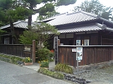 {右}島田市博物館分館 河原2-16-5 六番宿の斜め向かい。遺跡内の拠点施設として平成12年開館。街道側から島田市民俗資料館、海野光弘版画記念館、民俗資料室がありまとめて島田市博物館の分館としている。民俗資料館の建物は明治24年(1891)築の木造2階建て日本家屋の桜井邸で1階は地元の大工が伝統的な工法で作り2階は京都の職人が数奇屋風の部屋に仕上げ茶室として利用されていた。平成11年に改修され1階に静岡出身の版画家海野光弘(昭和54年没)の版画や昭和時代の炊事場再現や農具等が展示されている。版画記念館は特別展などのギャラリーに使用されており民俗資料室には多くの古道具が並ぶ。入場料300円(博物館本館と共通)9時-17時。月休。敷地内には日本庭園(中庭)や倉庫(非公開)もある。 |