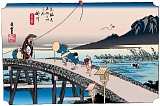 大池橋 先に進むと昭和56年竣工の逆川橋で逆川を渡り二瀬川交差点で左折して国道1号に合流する。国道をしばらく行くと今度は昭和36年竣工の大池橋で倉真川を渡る。文化2年(1805)頃の掛川誌稿には長さ29間(52m)幅3間1尺(5.7m)土橋とある。橋を渡ると左に夢舞台道標掛川市 大池橋と「大池橋と秋葉街道」説明板があり5叉路がある。ここは秋葉街道(塩の道)と東海道の追分で安永9年(1780)には正面に青銅製大鳥居、明和6年(1769)には両側に常夜燈が建てられた。広重の狂歌入東海道の掛川は大池橋とこの鳥居と常夜燈が描かれている。嘉永7年(1854)安政大地震で倒壊し鳥居は木造で再建されたが現在は鳥居も常夜燈もない。広重の保栄堂版53次の掛川も鳥居はないが大池橋と言われる。 |