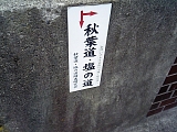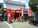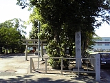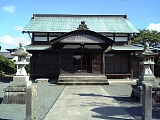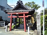 {右・寄}秋葉山遙拝所 東海道は5叉路を左折し国道1号から分岐して県道253号を進むが5叉路の右から2本目の通り(秋葉通り)に入るとすぐ右に秋葉山遙拝所がある。道に面した赤鳥居の右には「右あきは社 大池村」と刻まれた自然石の道標と明治22年(1889)の神社名石柱。明治31年(1898)の手水石がある大きな瓦葺屋根の手水舎の奥に小さな社殿がある。手水石手前の火袋がない灯籠も明治31年。社殿右の小屋には追分にあった大鳥居の扁額が保管されており小屋の中には大鳥居の写真も貼られている。秋葉街道はこの道の少し先を右折し北にある源ヶ池に向けて進みその先は周智郡森町、浜松市天竜区春野町を通り秋葉山に通じる9里(35km)の道のり。さらにはその先もっと北の信州に通じる塩の道でもあった。 |