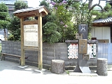 {右・寄}十九首塚 東光寺本堂左の墓地の奥が整備され小公園になっておりその中にある。天慶3年(940)平将門の乱を平定した藤原秀郷は将門と家臣18人の首級を持って京に向かうが賊徒の首を都に近付けてはならないという朝廷からの勅使とこの地で出会い小川(血洗川)で首を洗って橋に掛け首実検を行った。首実検ののち秀郷は首をこの地に埋葬し19箇所に塚を作った。塚は時代を経て減り将門のものと思われる大きな1基だけが残されていたが平成13年に家臣18人の供養塔が周りに建立された。この辺の地名は十九所(じゅうくしょ)と呼んでいたがいつの頃からか読みはそのままで「十九首」となった。橋の欄干に首を掛けたことに掛川の地名が由来するとも言う。小公園内にはベンチや健康石つぼ遊歩道もある。 |