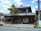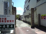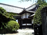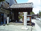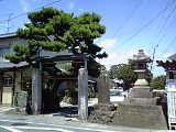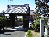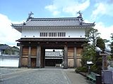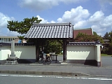 {右}法輪山 円満寺 [真宗大谷派] 掛川459 アーケードがなくなり西町に入るとある。元は南西郷久保村にあり天正年間(1573-91)には掛川城下にあったが一豊による掛川城大改修で現在地に移った。本尊の阿弥陀如来は一豊が一度土佐に運び戻ってきたもの。一豊の位牌も所蔵する。現在の本堂は近代的な建物。茶匠山田宗偏の茶室や茶道具を所蔵していたが享保20年(1735)明願寺(岡崎市伊賀町西郷中114)に譲渡した。山門は掛川城二の丸東南隅の内堀(はす池)畔にあった蕗(富貴)の門を明治5年(1872)買受け柱の下を2尺5寸(76cm)切取り移築したもの。構造は梁行2間(3.6m)桁行1間4尺(3.1m)の薬医門形式で本瓦葺。両開きの扉があり軒瓦には幕末の藩主太田氏の家紋の桔梗紋がある。桔梗は掛川市の市章や市の花にもなっている。 |