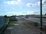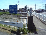 同心橋 しばらく進み十字路を渡った右に自然石に「是従 和田岡村 原谷村 経森町通」と刻んだ大正4年(1915)建立の道標がある。森町は森の石松で有名な遠州森町(周智郡森町)のこと。先に進むと原野谷川に出る。川の手前で左から合流する国道1号に架かる平成4年竣工の同心橋で渡るが渡った後すぐ国道1号から左に分岐するため渡る前に川の土手まで進み国道1号をくぐり国道の左歩道に出て橋を渡った方が良い。橋を渡って左に分岐するとすぐ右に夢舞台道標袋井市 名栗がありここから袋井市になる。 |