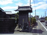 {右}金原明善(きんぱら めいぜん)生家 村境の杭のすぐ先に黒塀に囲まれてあり前に石柱もある。ここの大地主の家に天保3年(1832)生まれた明善は19歳から洪水を4度経験しさらに慶応4年(1868)には天竜川下流域120ヶ村が3ヵ月も水浸しとなる大洪水を経験した。明治5年から県の天竜川普請専務、総取締をつとめ明治7年には天竜川通堤防会社を設立、明治10年治河協力社に改称とともに全財産を寄付し堤防工事、測量など治水事業を行ない明治18年(1885)には県の事業として受け継がれた。明治11年天竜橋を架橋し管理も行なった。明治18年からは流域の山々に300万本もの植林をし洪水の元を絶つ事業を始め大正12年(1923)91歳で没。生家の母屋は慶応2年に一部改修した程度で江戸時代そのままの状態で現存している。 |