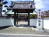 {右・寄}(上之渡船場) 摂取山 行興寺 [時宗] 池田330 風景館前を東へ進んで行くと左にある。延久元年(1069)創建で正応3年(1290)遊行上人2世他阿真教により改宗した。本尊は阿弥陀如来、観音菩薩、大勢至菩薩。本堂左に熊野御前、その母、侍女朝顔の墓所があり前に堂と説明板がある。池田の長者の娘で平家物語や能「熊野」にも登場するの熊野御前は治承4年(1180)平宗盛の寵愛を受け都に行ったが母が病気と知り帰郷した。母は建久元年(1190)没し御前は尼となり建久9年33歳で没した。花房が1m以上にもなる長藤も有名で墓所の裏側に昭和7年(1932)国指定天然記念物1本(樹齢850年根周2.9m樹高2.5m)本堂右前に昭和47年県指定天然記念物の絡み合った5本(樹齢300年根周2.4m樹高2.5m)がある他境内に17本あり藤棚面積は572平方m。 |