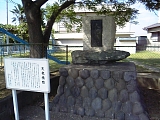 {右}西之島学校跡 若宮八幡宮参道左の森下公園の奥にある。石垣で一段高くなった円形の緑地に跡碑がある。西之島学校は明治5年(1872)の学制発布に伴い翌年に土地の豪農熊谷三郎馬(青城)がこの地に設立し明治8年同じ場所に校舎を建てた。見付学校、鎌田山醫王寺[真言宗智山派](鎌田2065-1)に建てられた坊中学校とともに遠州3大学校の一つと称された。その後は明治29年井通尋常小学校、昭和16年井通村国民学校などの名称を経て昭和22年井通小学校に改称、昭和29年新築校舎(森下300)に移転した。学校は昭和30年3村合併により豊田南小学校に改称し村立、町立を経て現在は磐田市立豊田南小学校となっている。 |