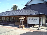 {左}金原明善記念館 安間町35 生家の向かい。昭和35年開館で1、2階の展示室に明善の遺品、写真、書簡などを展示。前庭には「木を植えて 天龍の川 治めんと 心も固く 若き日の明善」歌碑や明治の俳人安間木潤の師の摩訶庵蒼山の句碑「さすかたは なくてただ飛ぶ ほたるかな」もある。木潤は松林寺開基の安間了願の子孫。9時-16時、月祝休、無料。明善は治水の他に明治4年(1871)自宅に私塾を開いたり明治21年日本初の更正保護施設である出獄人保護会社、明治25年天龍運輸会社(現:丸運)も創設した。私塾は明治6年に現在の和田小学校(薬師町273-2)である安間学校となった。小学校北の八柱神社には紀功碑と胸像台座跡、妙恩寺に供養塔、明善が最初に植林した佐久間町(天竜区)の森には明善神社もある。 |