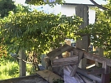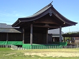 {右}(上之渡船場) 豊田熊野記念公園・熊野伝統芸能館 池田332-3 行興寺の裏にある。公園敷地は貞永年間(1232-33)創建の遍照山西法寺[真言宗]の跡地で大師堂と墓地が残っているが長藤の藤棚(総面積1042平方m)になっている。寺は浜松市の快真寺(中区鴨江1-41-8)に統合された。公園内には熊野伝統芸能館の能舞台もある。北側の芸能館は伝統芸術文化の振興と市民の文化の向上およびコミュニティー推進のため熊野御前の没後800年にあたる平成10年に開館。楽屋、和室3室の他に展示室もありここの能舞台で上演された能「熊野」のビデオも見られる。9:00-21:30(展示室は17:00まで)、無料、毎月、隔月最終火曜休。能「熊野」は古くは「熊野松風に米の飯」と言われ能「松風」とともに米飯と同じく何度観ても飽きず味があると称された。 |