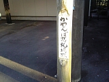 {左}かやんば高札場跡 松林寺向かいの民家の駐車場の電柱前に木杭がある。「かやんば」は萱場のことでこの辺りは旧:萱場村であった。萱場村の鈴木謙一郎は明治7年の天竜川橋架橋を中野町村の浅野茂平と共に県に願い出た。明治22年(1889)町村制施行で萱場村と中野町村など11村が合併し豊田郡中ノ町村となり明治29年(1896)浜名郡に編入され昭和29年には浜松市に編入された。しばらく行った先右には「東海道松並木跡」木杭もある。 |