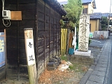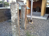 {左}明治天皇御座所碑 しばらく行くと民家横の敷地にある。大正9年(1920)建立で喜多川平次郎謹記、溝口由平謹書。明治天皇が明治11年(1878)北陸東海巡幸の際に休息した。 |