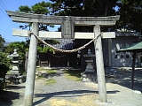 {右}六所神社 中野町1423-1 木杭から右折して土手を下るとある。建治2年(1276)尾張国中野郷より勧請。祭神は底津綿津見神、中津綿津見神、表津綿津見神、底筒之男命、中筒之男命、表筒之男命。明治7年(1874)津島神社と上下神社を合祀し素盞鳴命、武雷命も祀る。この地は元は津島神社の敷地だった。大正12年(1923)賀陽宮殿下が参拝し境内右にその記念碑。灯籠、手水石は大正4年、鳥居、狛犬は昭和50年。境内右に金比羅神と水天宮の文字が刻まれた石碑、社殿左の社務所前に秋葉神社の小祠。境内左から道に出ると右に「旧東海道」木杭があり東海道が続く。少し先右に大きな明治27年(1894)建立の天竜川橋紀功碑。明治7年の天竜川橋架橋の功績を称えており東京大学教授もつとめた南摩綱紀の撰文、書。 |