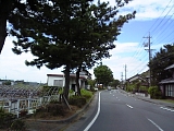 {左}松並木 しばらく行くと左歩道と車道の間に少し小さめの松並木が始まる。手前左には昭和50年建立の町営高師山圃場整備碑がある。江戸時代の東海道松並木は橋本村内で約1km大倉戸村で300mで昭和50年頃まであったが松喰虫で全滅し現在の松は昭和62年に植栽復元されたもの。この松喰虫の大発生により東海道以外も含めた新居町全体で4万5千本もの松が枯れたという。 |