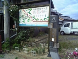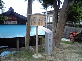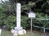 {左}明治天皇野立所阯 大倉戸の集落を出る手前に柵に囲まれて昭和11年(1936)建立の石碑と木製立札説明板がある。明治元年(1868)東京へ行幸した明治天皇が休憩した場所。明治天皇はその夜は新居宿飯田武兵衛本陣に宿泊した。 |