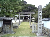 {右}火鎮(ほずめ)神社 湖西市白須賀5942 湖西市白須賀に入りしばらく行くとある。かつての白須賀宿の鎮守の社。祭神は火之迦具土神、品陀和気命、徳川家康。応永年間(1394-1428)の津波、安永年間(1772-81)の火災で古文書消失し創建詳細は不明。神社前左に夢舞台道標白須賀宿 火鎮神社、大きな白須賀宿マップ(案内板)がある。石段途中の明治44年(1911)の鳥居前にある灯籠は文政2年(1819)。石段を登りきるとある手水石と灯籠は天保4年(1833)で灯籠の火袋は昭和61年金属製となっている。社殿前の灯籠は昭和31年(1956)。社殿前から右へ40mほど山道を行くと孟宗竹の林の中に赤鳥居と祠(間口1.5m奥行1.8m瓦葺)がある。この地域の大漁祈願のために神奈川県葉山町から勧請した稲荷社でこの山も稲荷山と呼ばれる。 |