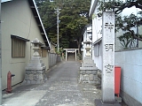 {右}内宮 神明神社 白須賀5451 少し先の十字路をを渡るとある。度重なる津波で古文書等が失われており創建は不明。延喜式神名帳記載の大神々社とする説もある。祭神は天照皇大御神、天手力雄命、萬幡姫命。古くはこの地は神森山と呼ばれた。潮見坂南西の海岸近くにある神明神社(白須賀848)を外宮と呼ぶのに対しこちらは内宮と呼ぶ。入口右の神社名石柱は明治43年(1910)建立。鳥居は木製。灯籠は元治元年(1864)明治2年(1869)昭和5年(1930)などがある。手水石も昭和5年。社殿左に境内社があり秋葉社、津島社、金刀比羅宮、八幡社がある。宝永8年(1711)以降の棟札や吉宗以降の幕府からの朱印状写しが現存する。境内地は白壁に囲まれており左隣には長屋門がある民家がある。 |