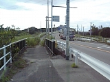 境川 東海道は県道を少し進むと右に分岐するが100mほどでまた県道に合流する。しばらく行くと三河国と遠江国の国境だった境川を境橋で渡る。小さな川だが現在も静岡県と愛知県の県境でありここから豊橋市になる。渡ってしばらく行くと左下の畑の中に等身大くらいの石仏があり東海道はさらに先の一里山東交差点で国道1号(潮見バイパス)に合流する。車道は少し左にカーブして合流するが右の歩道はバス停のロータリーとして自然に合流している。その三角地帯には平成12年東海道ネットワークの会により7本の小さな松が植えられ「一里山七本松植樹」標示や常夜燈が建てられている。 |